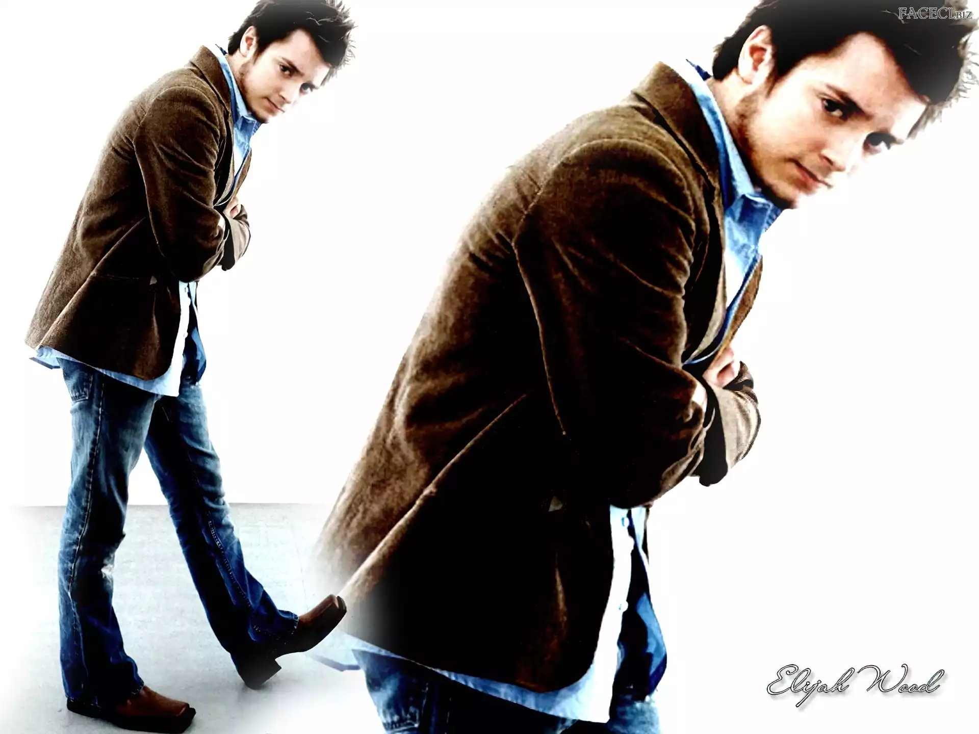 jeansy, Elijah Wood, brÄ…zowa marynarka
